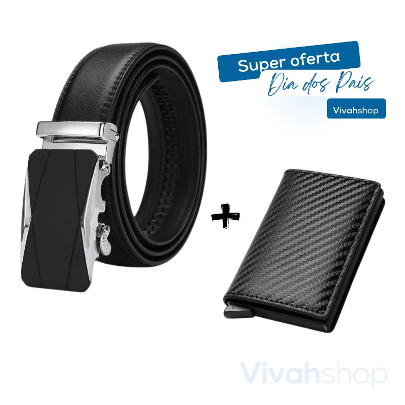 Cinto Sem Furos Imperium + Carteira fibra de carbono anti-furto