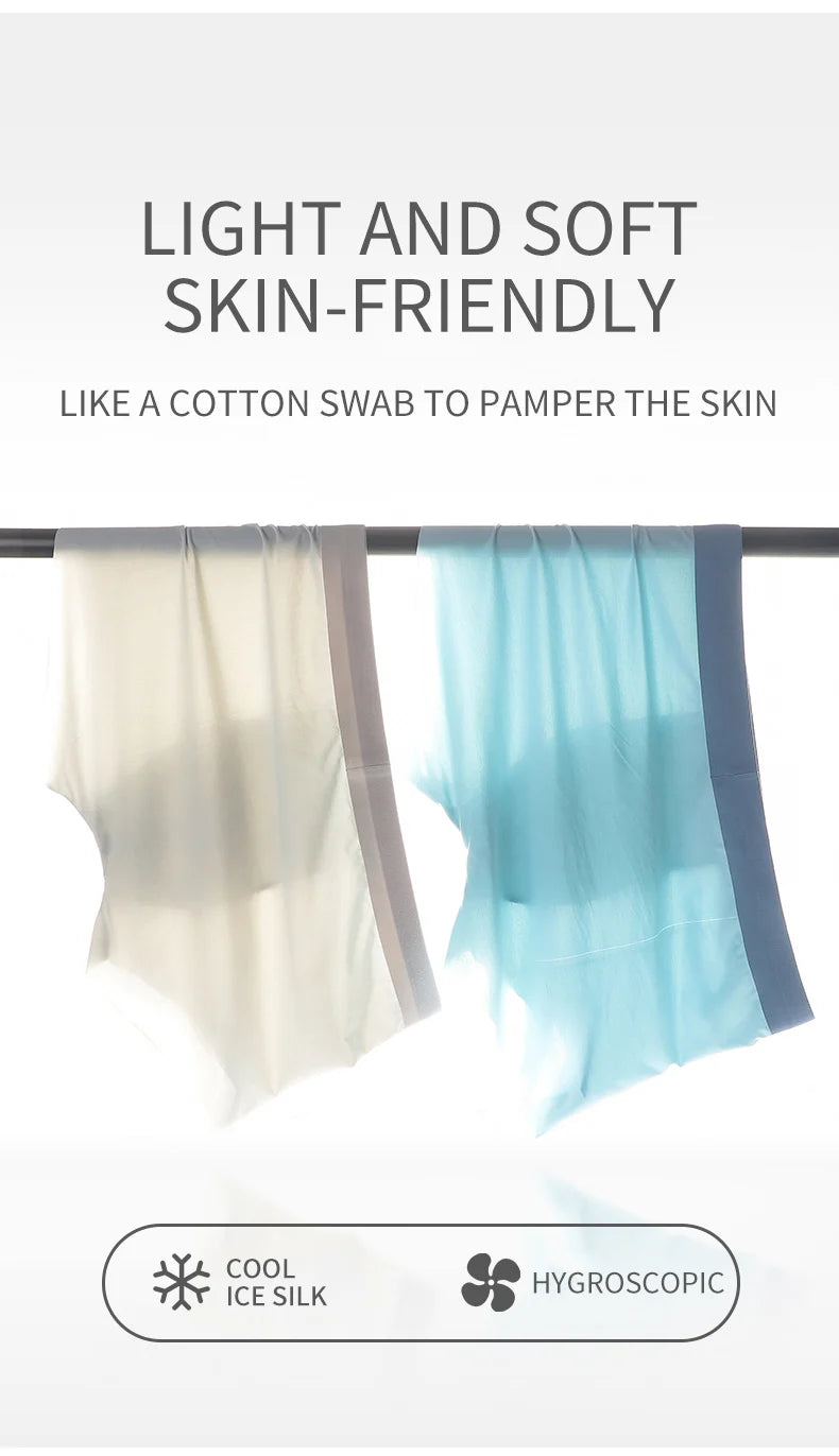 MIIOW 3Pcs Ice Silk Man Underwear Boxer Metal Fiber Antistatic Men Underpants Seamless Cut Hem Men's Panties Boxers Shorts Trunk